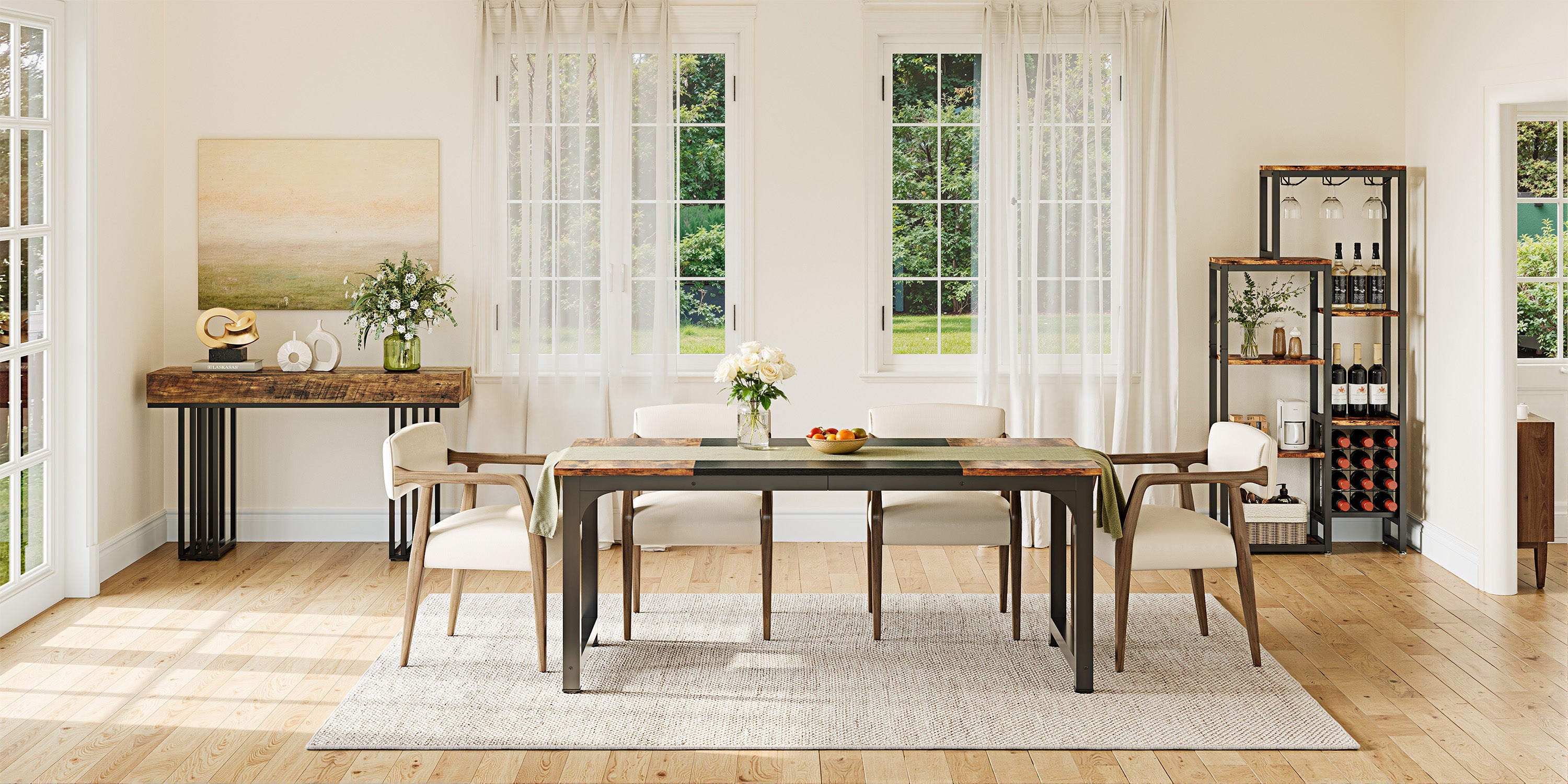 Tribesigns Tavolo da pranzo industriale, cucina rettangolare per 4-6 persone
